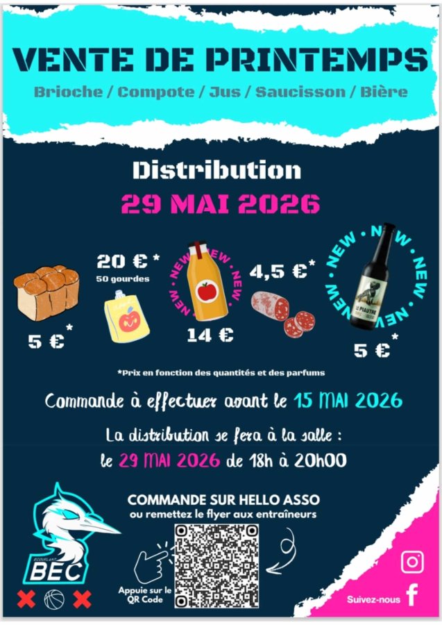 Le printemps arrive… et avec lui une belle initiative gourmande proposée par le BEC ! À l’occasion de sa vente de printemps, le club vous invite à soutenir ses activités tout en vous faisant plaisir avec une sélection de produits savoureux.